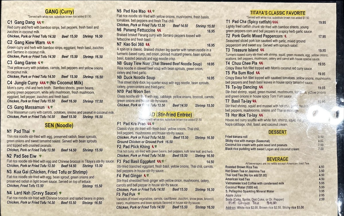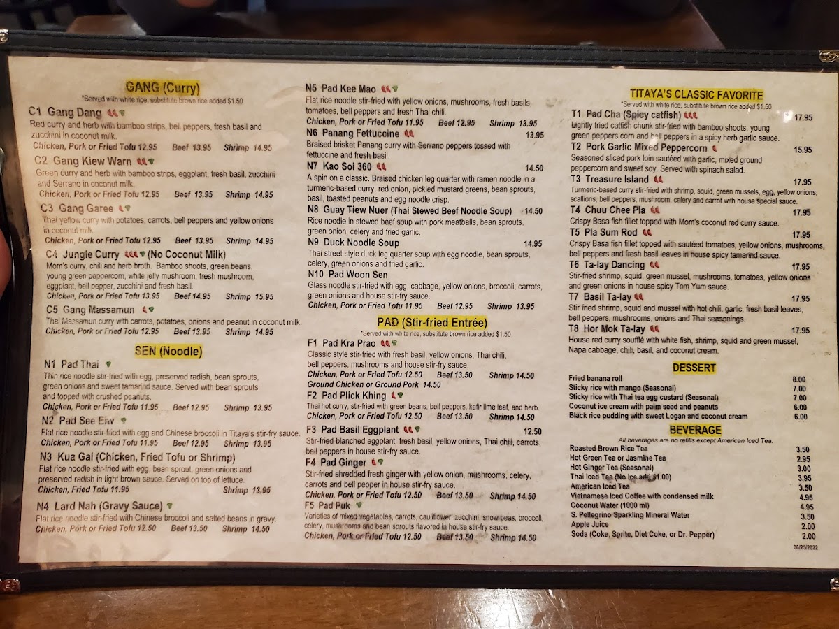 But don't just take our word for it. Customers rave about their experiences, like Subra Vemulpad, who shared, “...the service and food were worth waiting for. Great service, delicious food made with individual requests in mind and very reasonably priced.” Or Kelly Nguyen, who declared, "Titaya offers the best and most authentic Thai food I've had in the USA,” emphasizing her quick service and delectable dishes.
